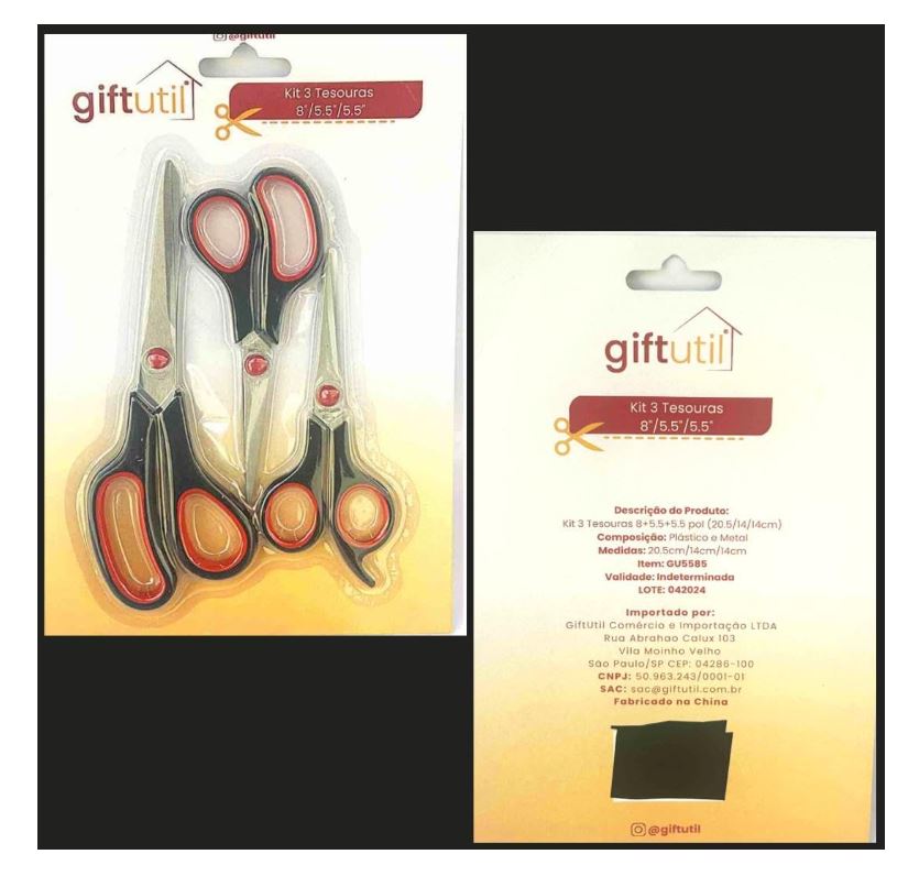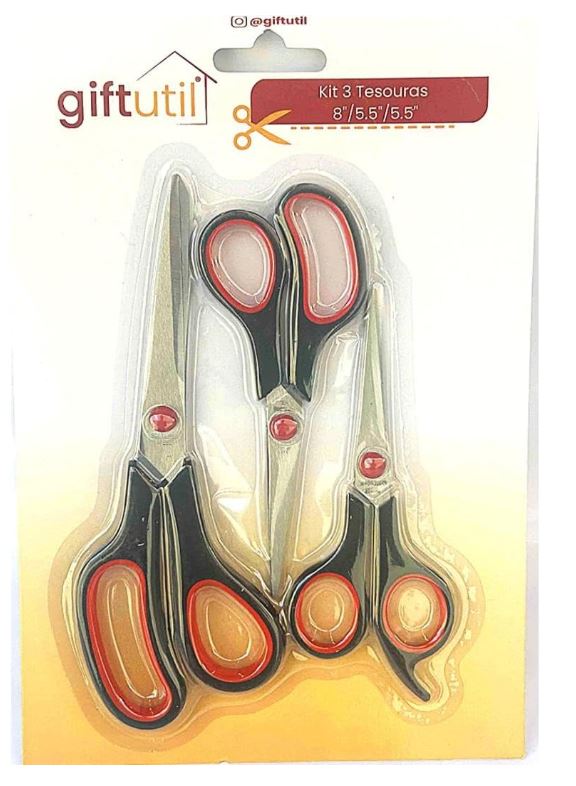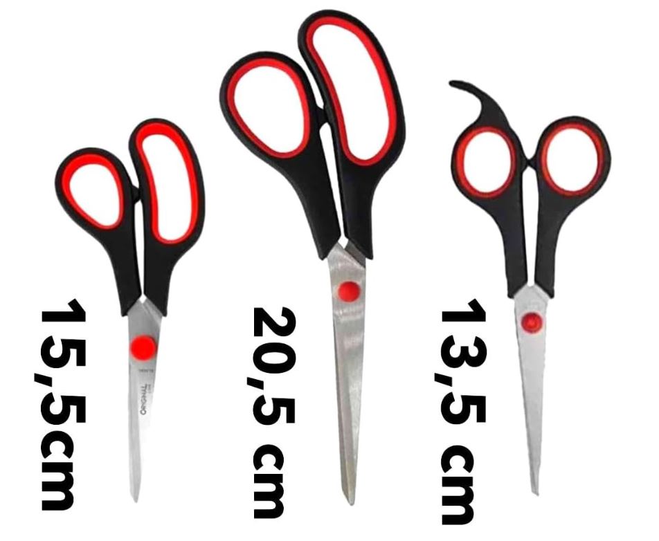 - KIT COMPLETO: Conjunto com 3 tesouras de diferentes tamanhos - 20,5cm, 14cm e 13,5cm, ideal para diversos tipos de corte e trabalhos manuais